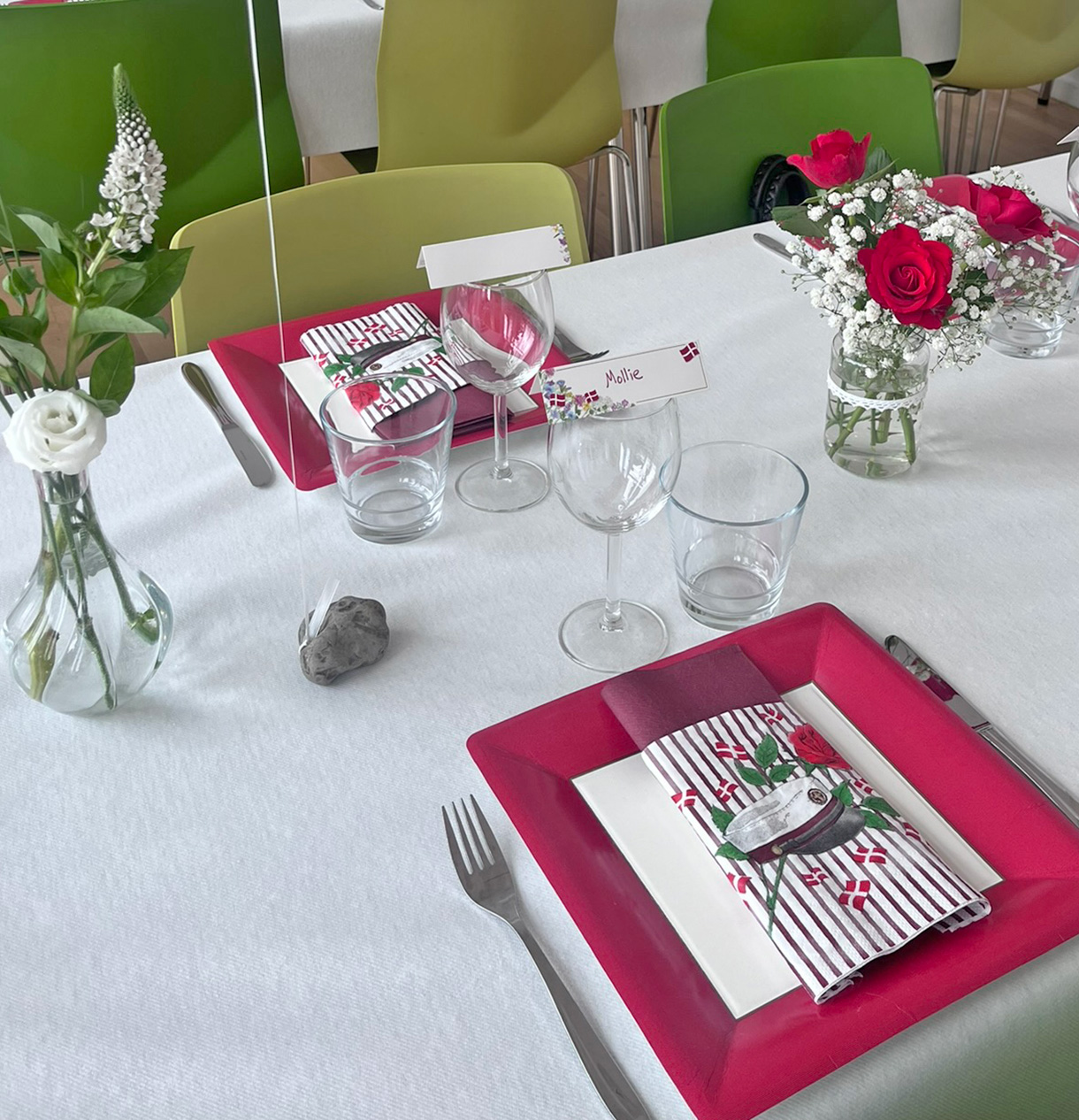 Bordkort/glaskort i det fineste fødselsdags,-og sommer motiv. Dannebrog og smukke blomster er klassiske pyntelementer i en fødselsdagsfejring, så jeg synes, du kan bruge bordkortene til fødselsdag hele året rundt, og naturligvis til sommerfest og studenterfest.