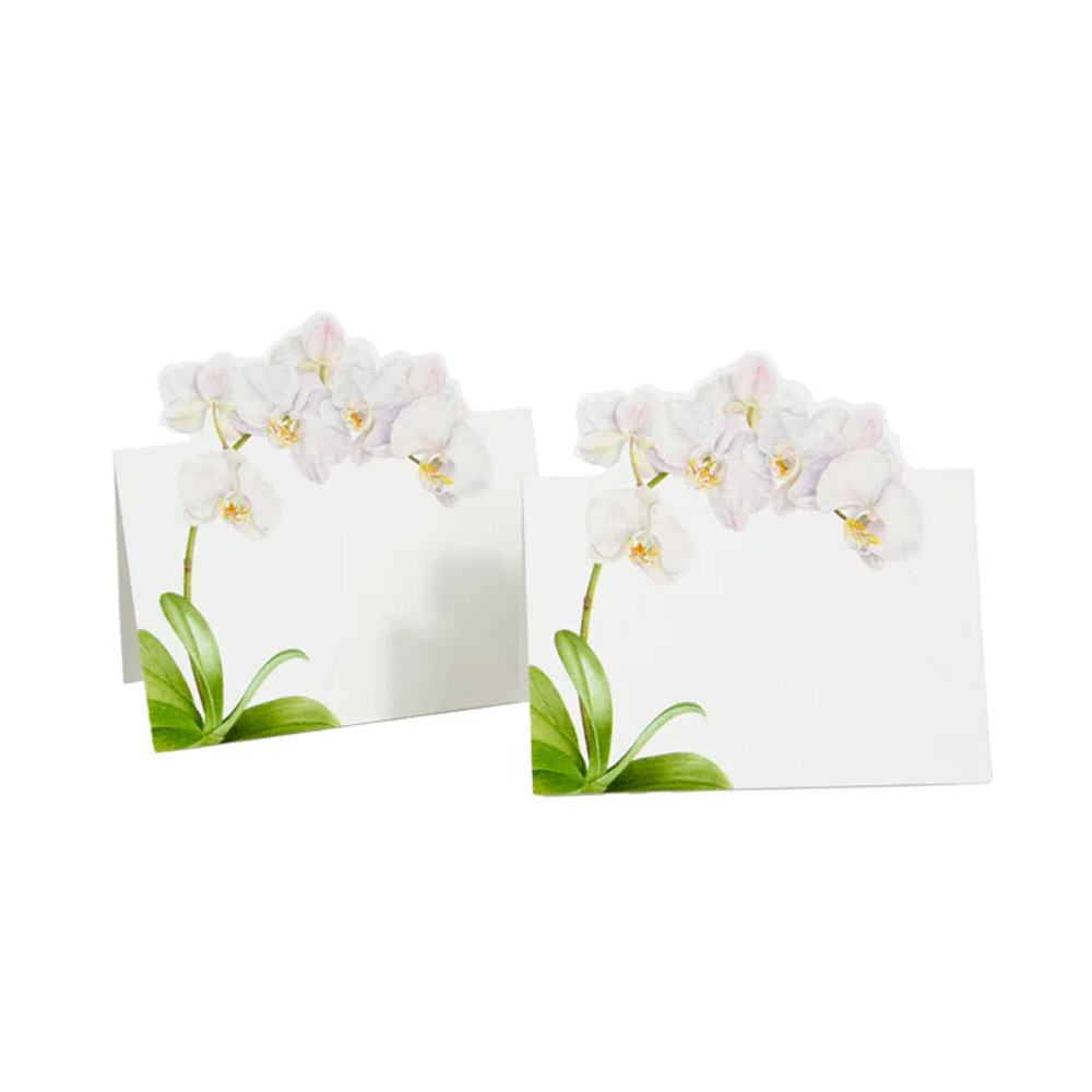 Eksklusivt bordkort med en udskåret orkide, malet med vandfarve. Bordkortet har jeg haft i sortiment i mange år, orkide motivet er bare så flot til alle anledninger.