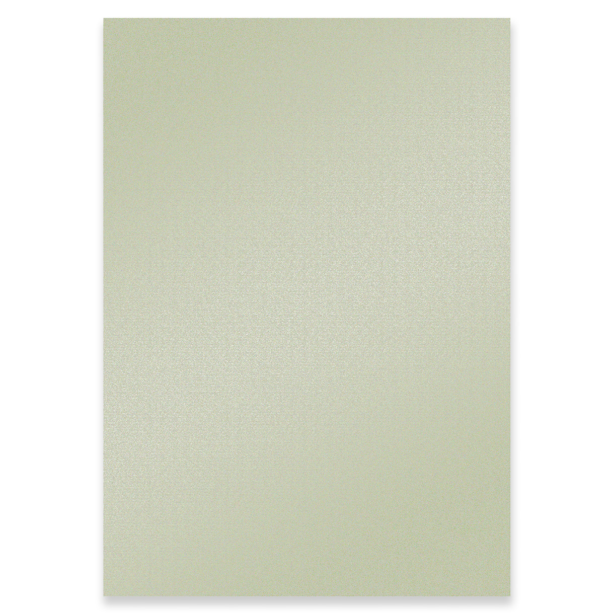 Støvgrønt metallic A4 papir fra tyske Roessler. Papiret er farvet på begge sider og meget dekorativt med det let 'perlemoragtige' skær, metallicpapiret har. Det er rigtig flot til både menukort og sangtekster, eller hvis du vil fx. dekorere konservesdåser med papiret og gøre dem til billige, personlige vaser på dit bord.