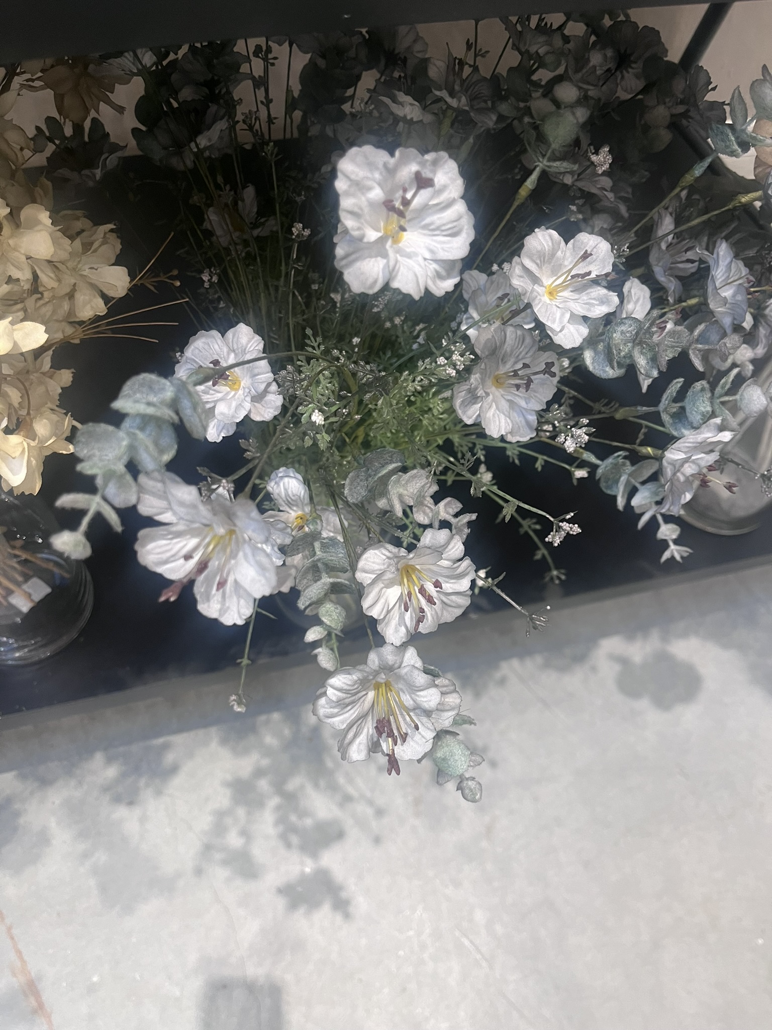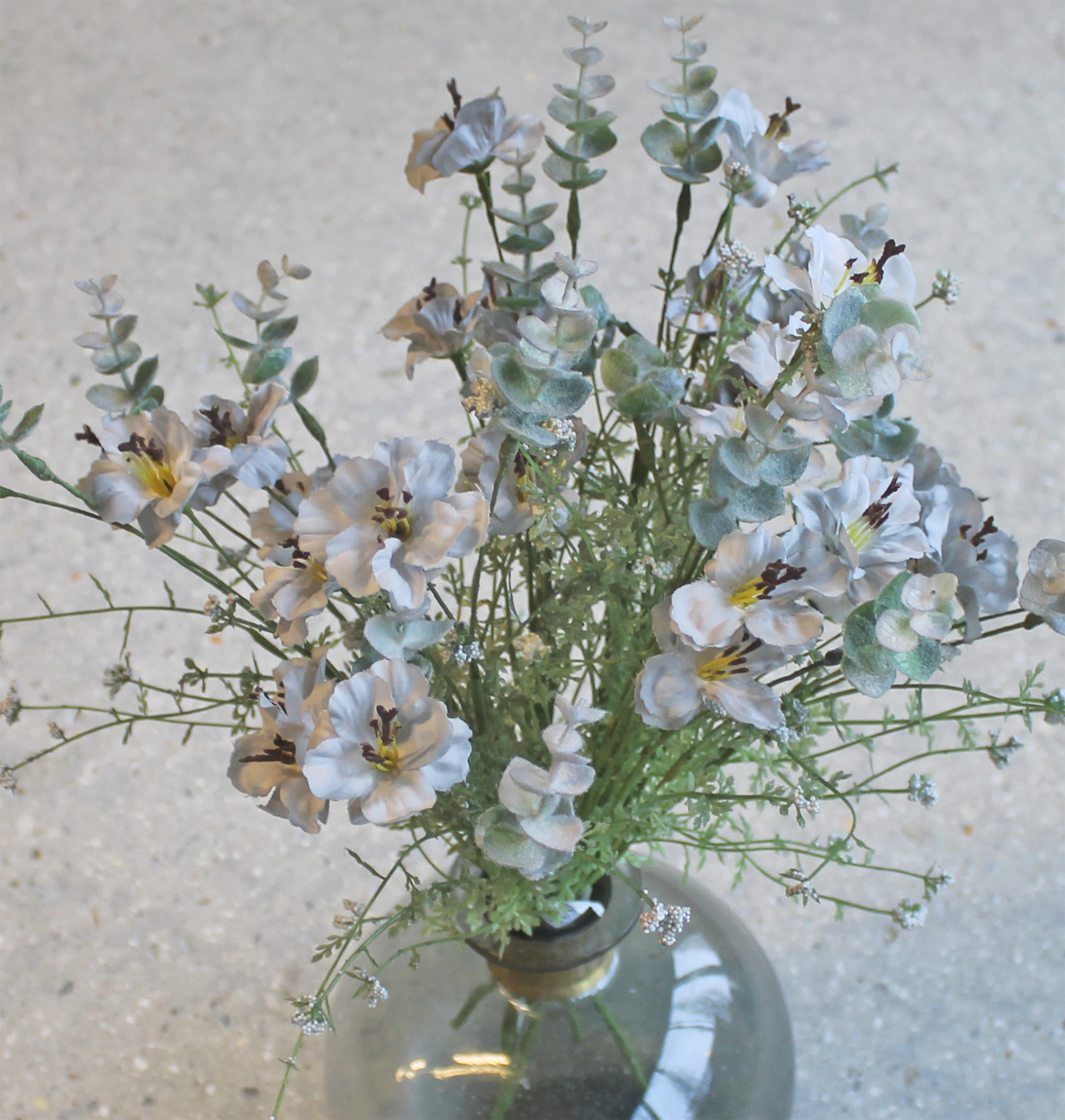 Inkalilje og eukalyptus silkeblomst, støvblå 53 cm.