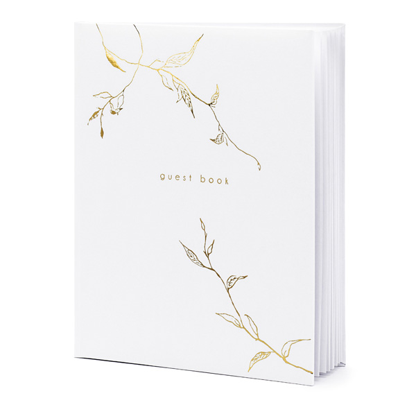 Gæstebog med indgraverede guldgrene på forsiden. Jeg synes gæstebogen er så fin, fordi den er neutral i sin anledning - her mener jeg, at den fx. ikke er dekoreret med hjerter :) Jeg tror, mange konfirmander vil kunne lide det næsten japanske look på den. Jeg har også bordkort med de samme guldgrene.