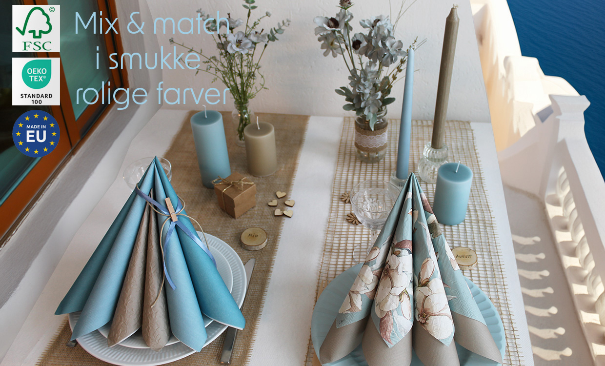 Du kan også se den samlede borddækning med servietten brugt med andre natur og støvblå farver her