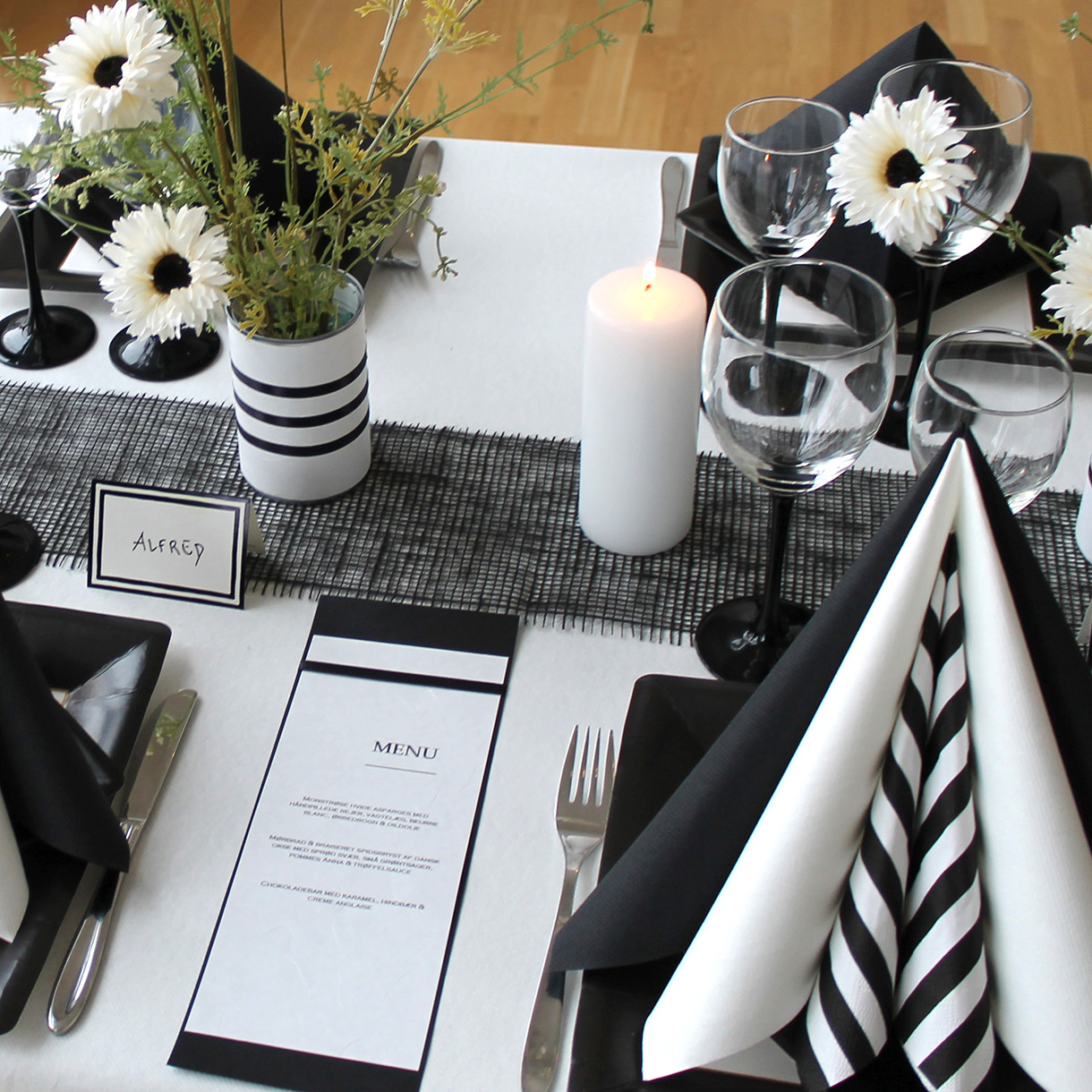 Sort bordløber fremstillet af oeko-tex certificeret naturjute. Du kan se den på billedet, på en borddækning, jeg har lavet. Den er meget dekorativ!
