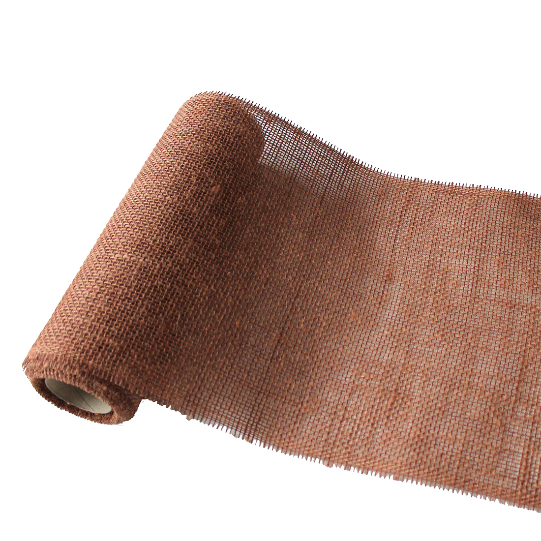 Bordløber fremstillet af jute i en gyldenbrun kobber farve. Dækker du op med kobberfarvede servietter, vil det fremhæve kobberfarven i bordløberen, og dækker du op med varme, brændte farver vil den i stedet lede tankerne hen på kanel..den er ret så anvendelig til både kobberbryllup, efterårsfester og jul. Eller til et sommerbryllup, hvor resten af bordet er holdt i sarte, nude nuancer.