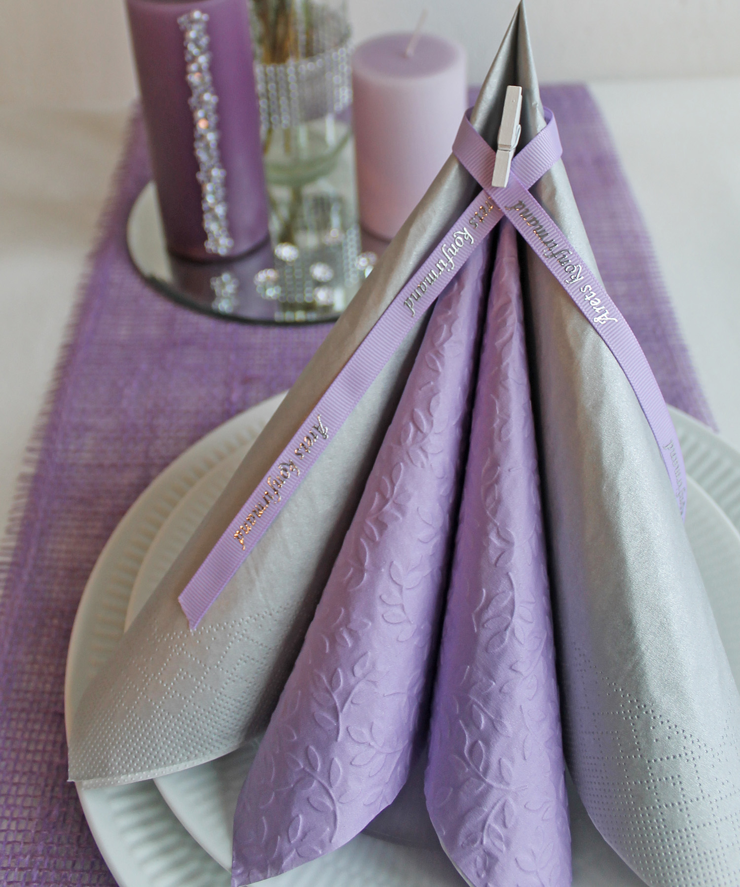 Lyslilla prægede servietter, der har sin kurs direkte mod konfirmations-borddækningen ;-)