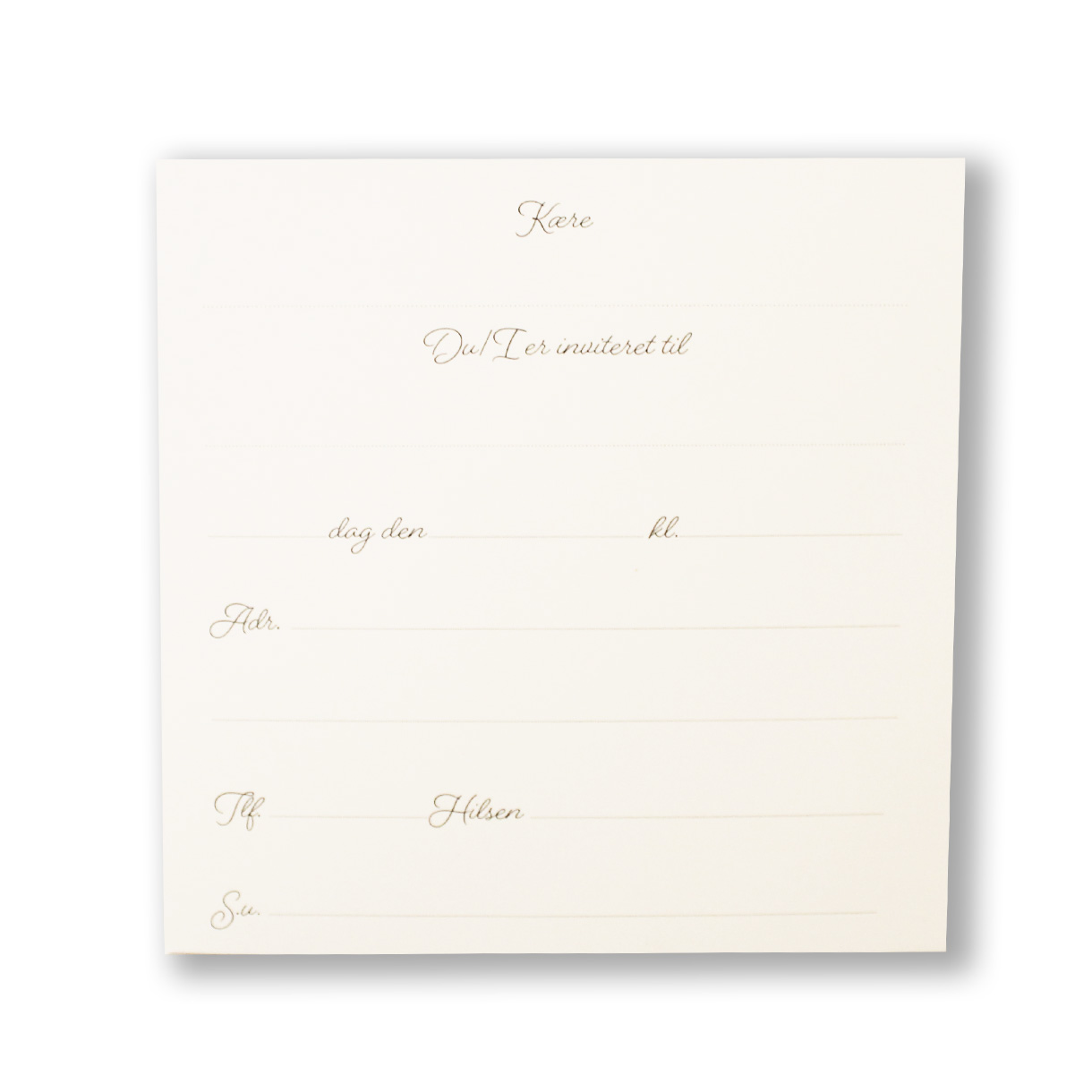 Gør det nemt for dig selv med et klassisk indbydelseskort til konfirmation med fortrykte linjer, så du hurtigt kan udfylde alle oplysninger.