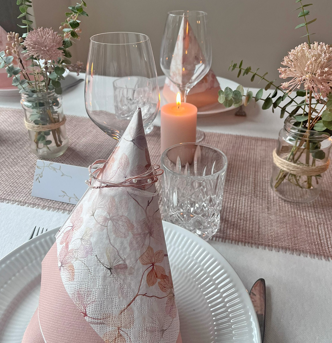 Jeg har lagt et billede på, hvor jeg har brugt det på en borddækning holdt i nudefarver.