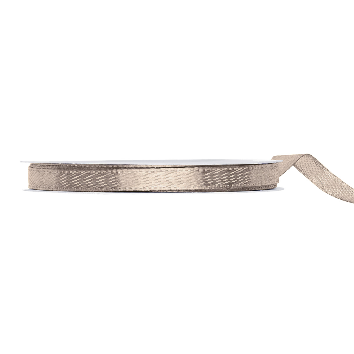 Sand/hørfarvet satinbånd. 6 mm, 25 meter på rulle.