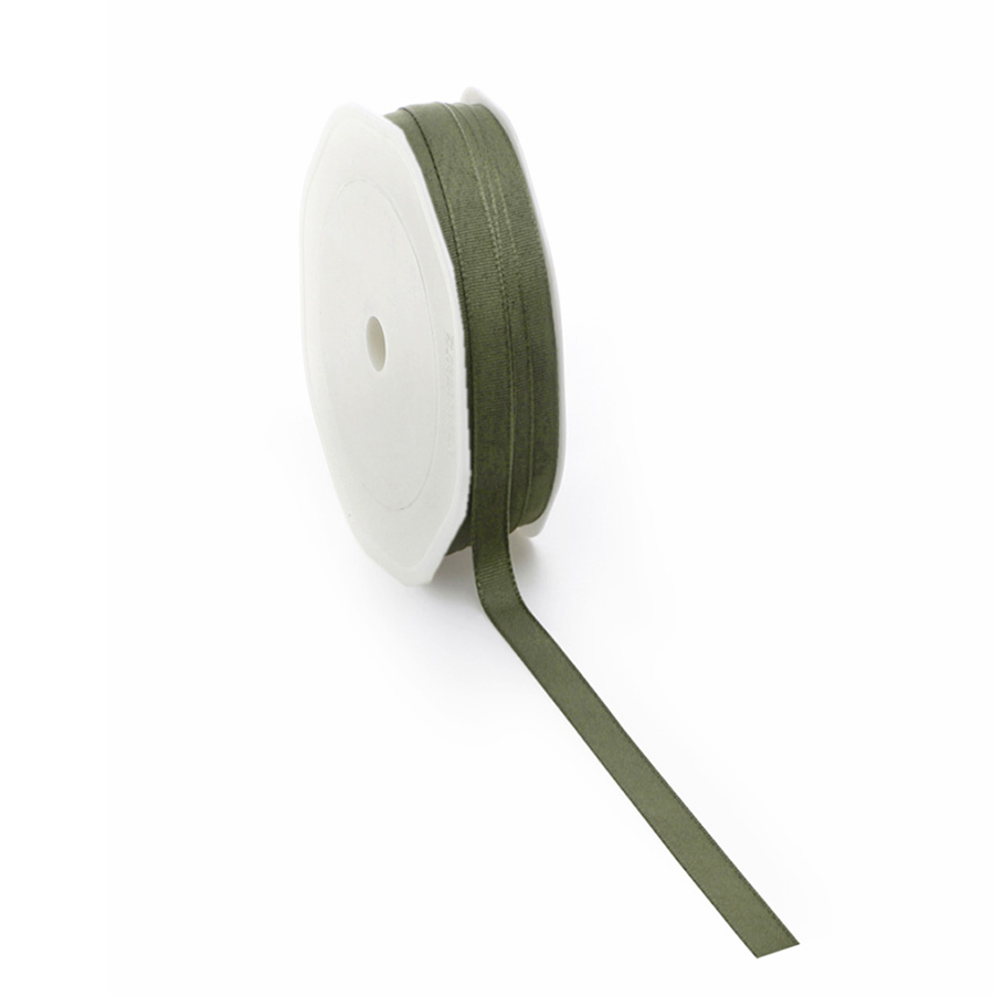 Stofbånd i flot skovgrøn/mørk olivenfarve. Båndet er meget dekorativt at binde rundt om servietter og vaser eller dekorere hjemmelavede bordkort og menukort med.